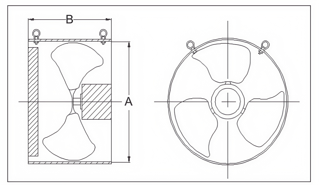 Hanging Air Circulation Fan Installtion Dimension Chart |